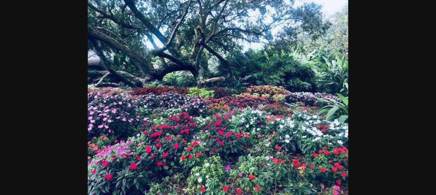 Take a stroll through approximately 15 acres of semi-tropical gardens nestled among 350 year old oak trees. The branches of these old oaks drip with moss that shimmer in the sunlight.
