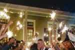 - String lighting over cafe tables and dance floor
